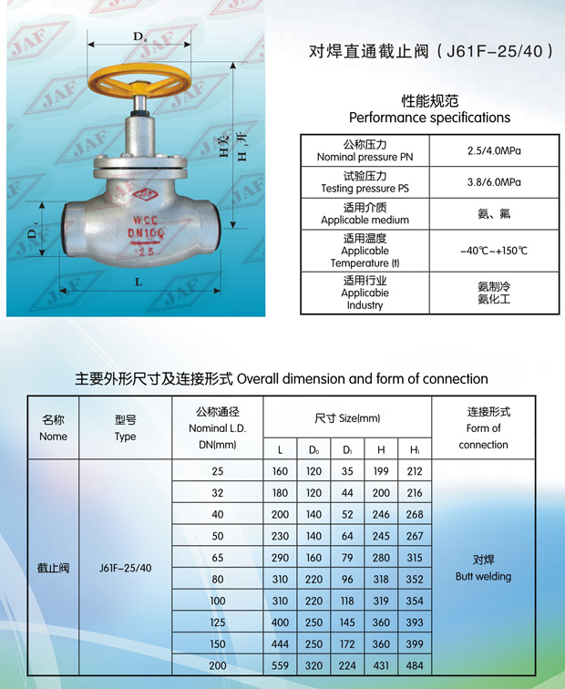 中南焦作氨閥股份有限公司是國家高新技術(shù)企業(yè),《氨用截止閥和升降式止回閥》國家標準起草單位,中國閥門(mén)協(xié)會(huì )、中國制冷協(xié)會(huì )常任理事單位,焦作市閥門(mén)工程技術(shù)研究中心,公司具有四十余年的生產(chǎn)歷史,擁有雄厚的技術(shù)力量和完善的生產(chǎn)、檢測設施,在同行業(yè)率先取得了ISO9001質(zhì)量管理體系認證和特種設備(壓力管道元件)制造許可證,1985年注冊的“JAF”商標,被譽(yù)為“中國制冷氨閥門(mén)”品牌。