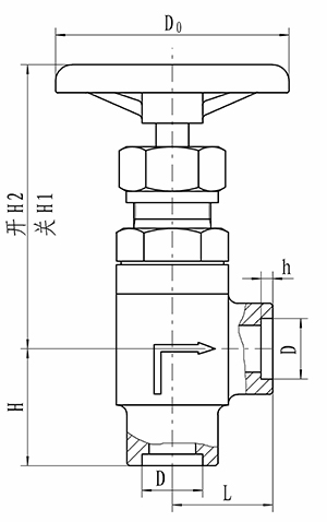 插焊連接直角截止閥(J64F-25)和節流閥(L64F-25)插焊連接直通截止閥尺寸表閥門(mén)型號公稱(chēng)壓力Mpa公稱(chēng)通徑DNLHH1H2D0Dh重量kgmmJ64F-25 L64F-252.56333391101651181038361231346514.561541381061189018.57204350121.5136100265圖示備注